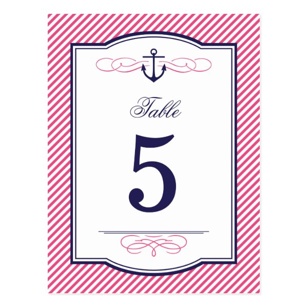 Navy and Pink Nautical Wedding Table Number Cards