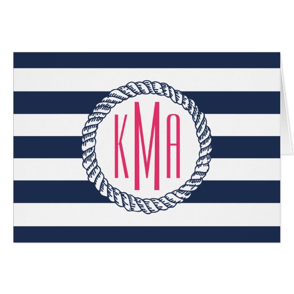 Preppy Nautical Navy & White Stripe Pink Monogram